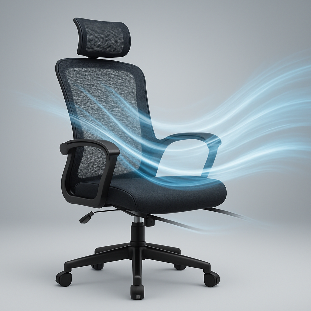 Notre chaise est conçue avec un dossier et une assise en mesh de qualité supérieure, une innovation pensée pour votre bien-être. Ce matériau unique permet à l'air de circuler librement, créant une ventilation constante et naturelle.