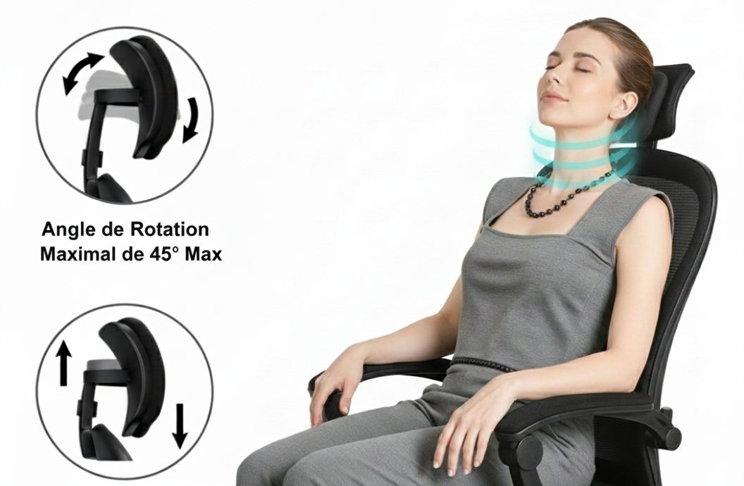 L'appui-tête est conçu pour un confort sur mesure, essentiel pour les longues journées.