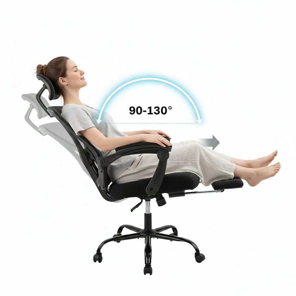 Profitez d’une inclinaison fluide de 90° à 130°. Détendez vos jambes grâce au repose-pieds intégré. Soulagez votre dos même durant les longues sessions. Adoptez une posture plus confortable en quelques secondes La chaise pensée pour allier travail, détente et performance.