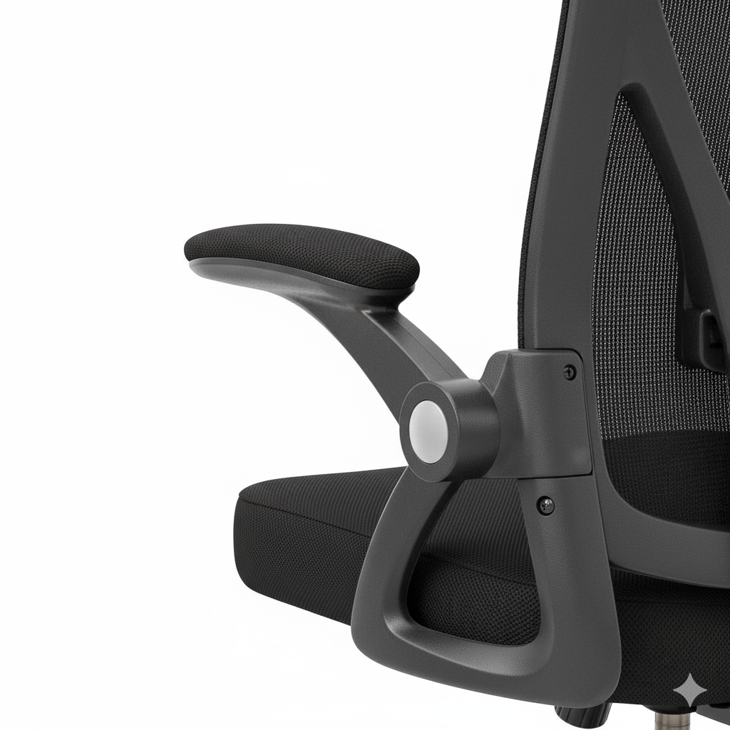 Nos accoudoirs ont été conçus pour s'adapter à votre vie, pas l'inverse. Rabattables à 90°, ils permettent de glisser votre chaise complètement sous n'importe quel bureau. Un geste simple pour libérer instantanément de l'espace dans votre pièce.
