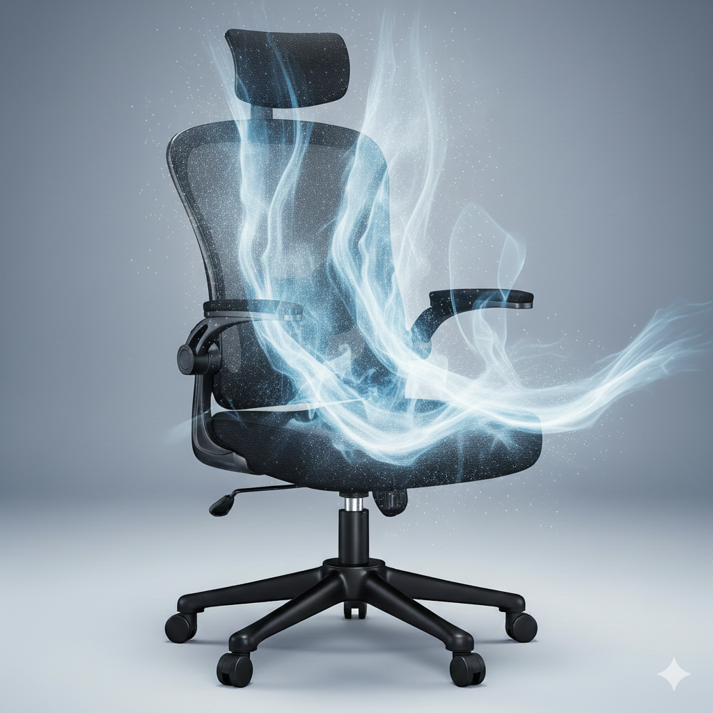 Notre chaise est conçue avec un dossier et une assise en mesh de qualité supérieure, une innovation pensée pour votre bien-être. Ce matériau unique permet à l'air de circuler librement, créant une ventilation constante et naturelle.